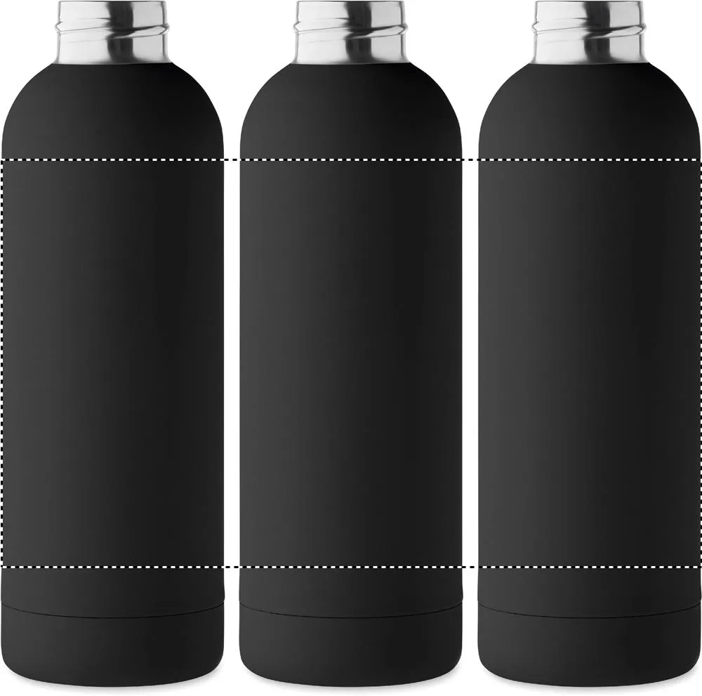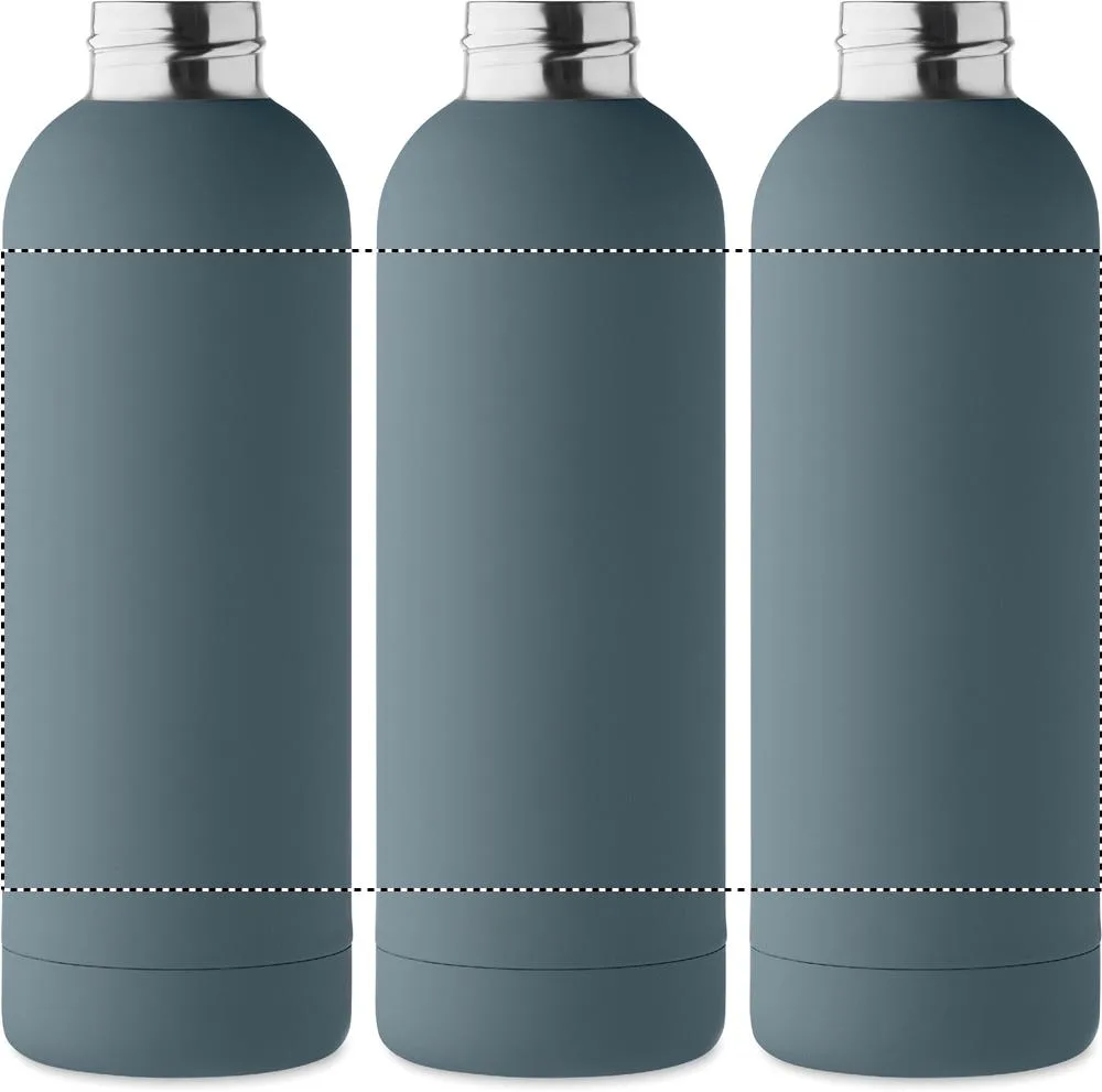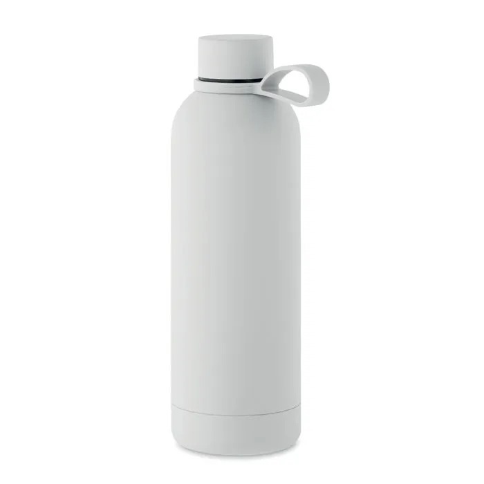 Garrafa de parede dupla isolante a vácuo em aço inoxidável reciclado (90% aço inoxidável reciclado e 10% aço inoxidável) com acabamento em borracha e pega em silicone. Capacidade: 500 ml.Garrafa de parede dupla 500 ml