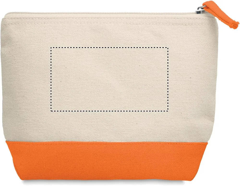 Bolsa cosmética em algodão com fundo colorido e fecho de zíper. 340 gr/m².Saco cosméticos em algodão