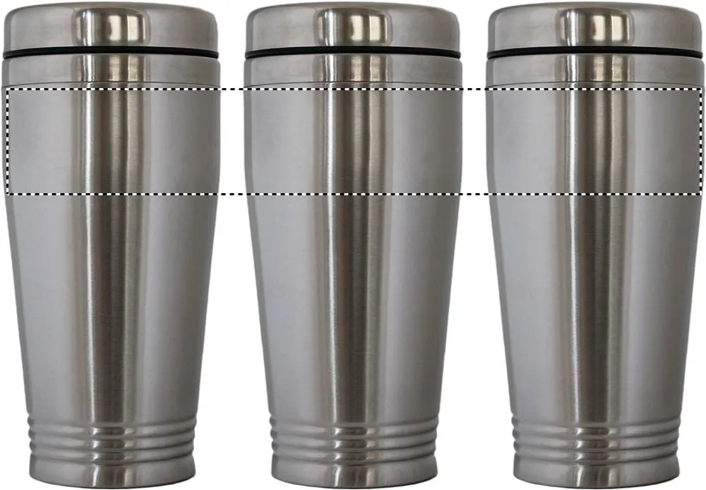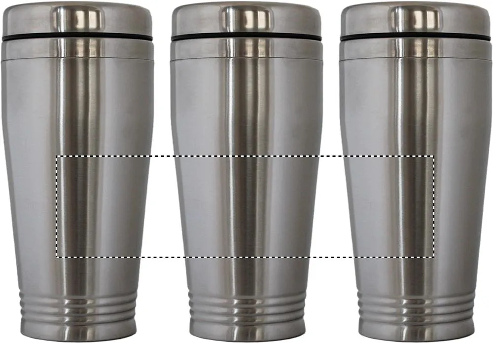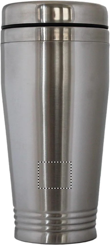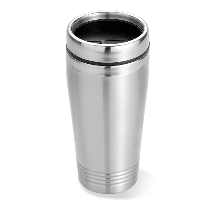 Copo de viagem em aço inoxidável de parede dupla com tampa em PP preto. Capacidade: 400 ml.Copo viagem parede duplo 400ml