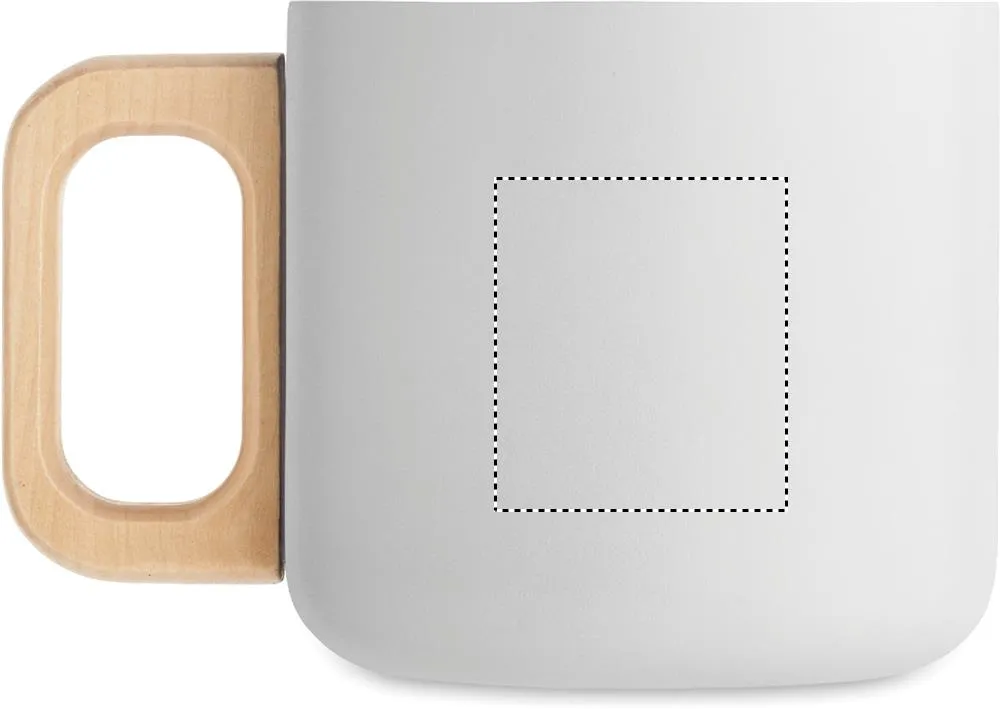 Caneca de parede dupla em aço inoxidável reciclado (90% aço inoxidável reciclado e 10% aço inoxidável) com pega de madeira. Capacidade: 350 ml.Caneca de parede dupla 350 ml