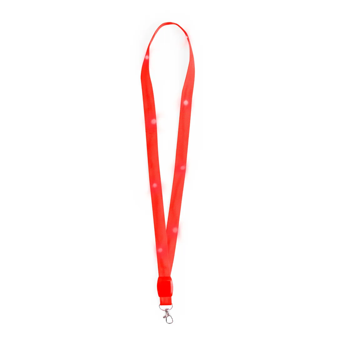 Original lanyard com luzes LED. Divertida fita para pescoço que contém no seu interior 8 LEDs alimentados por pilhas de botão (incluídas), com o seu discreto interruptor pode colocar-se em três posições (luz fixa, luz intermitente rápida ou lenta). Disponível em vários cores. Com prático gancho giratório.Poliéster8 Leds. 3 Posições de Luz, Fixa e Intermitente. Pilhas Botão Incluídas