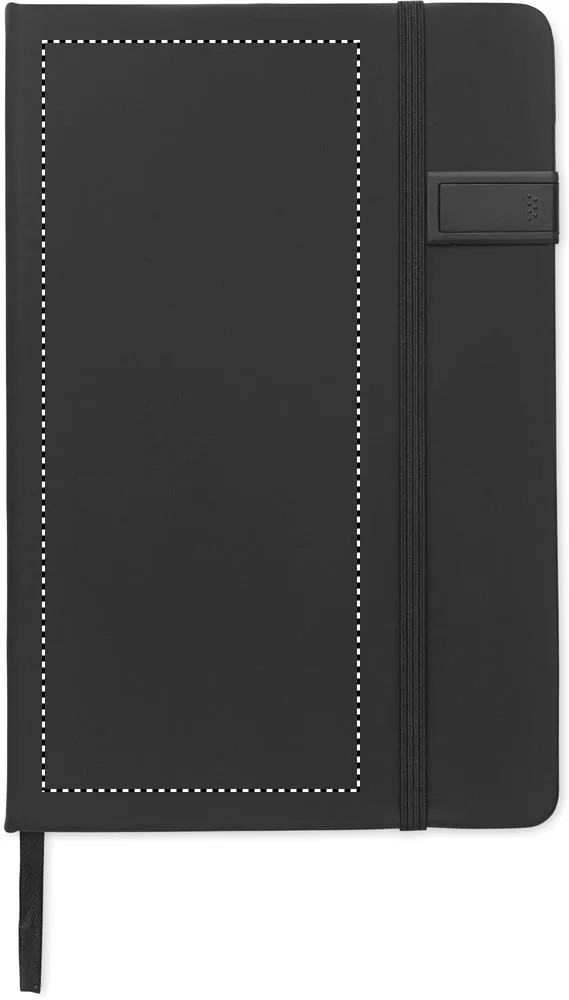 Bloco de notas A5 em capa dura fabricado em 58% poliéster reciclado e 42% PU, incluindo uma pen USB de 16 GB integrada. 160 páginas de papel reciclado com linhas (80 folhas). Alça de fecho elástica a condizer e marcador de páginas em fita. FSC®-certified | FSC MIX CREDIT, P7.1, FSC-C213206Bloco A5 com USB integrado