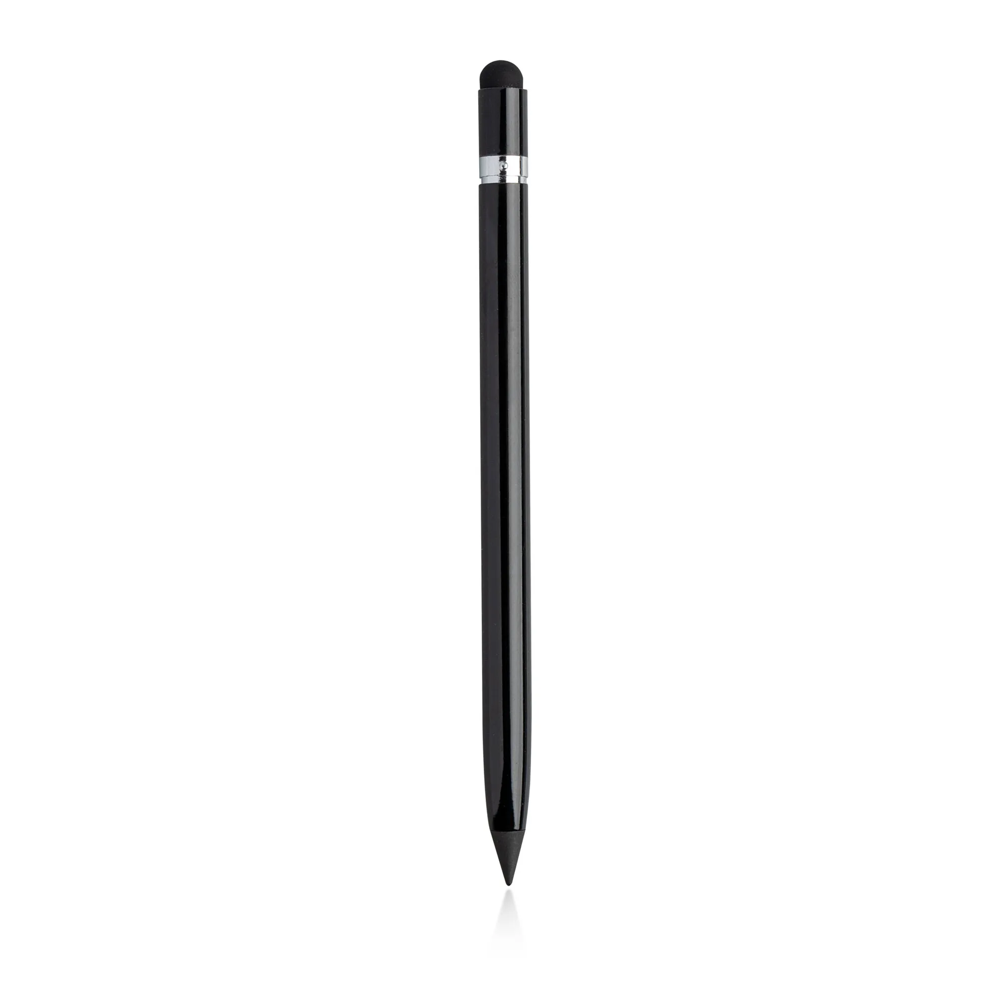 Lápis infinito em alumínio com touch. . Com uma ponta especial em carbono, e através da oxidação, este lápis vai escrever para sempre e nunca mais precisará de outro! Com uma estrutura muito mais resistente que a de um lápis regular e inserido na gama premium com um corpo em alumínio. Este lápis não precisa de ser afiado e contém uma borracha para apagar a sua escrita, escondida na estrutura metálica. Tem ainda touch para usar nos ecrãs tácteis. O conceito de infinito nunca fez tanto sentido.Lápis infinito em alumÍnio com touch