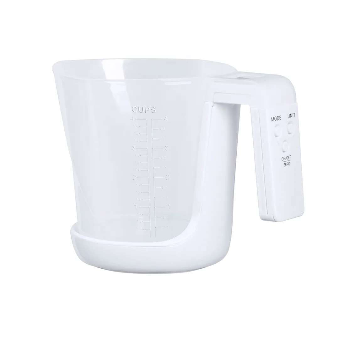 Ref: BEC53212MOBalança com jarro medidor integrado, fabricada numa resistente combinação de PP e ABS. Ecrã LCD com controlo por botões e função de tara, com capacidade máxima para 5 kg de peso e adequada para medir líquidos ou sólidos.Inclui um Jarro medidor de 1L de capacidade, com uma multiplicidade de opções e um vertedor para evitar derrames:-1L, com medidor lateral em secções de 50 ml.-32 oz, com medidor lateral com secções de 2 oz. -Medição rápida do volume de canecas.Funciona com pilha de botão (incluída) e vem apresentada individualmente em caixa.