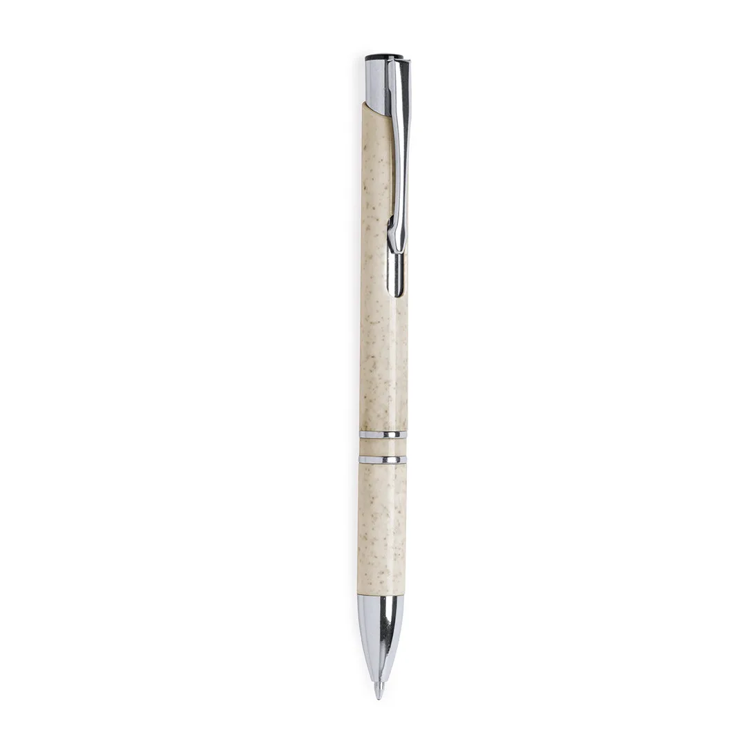 Ref: BEC5336MOA caneta da bola da linha da natureza com palha de trigo, para incentivar o uso de matérias -primas naturais e reduzir as emissões contaminantes. Clipe de metal e acessórios cromados. Com mecanismo de flexão, cartucho jumbo e refil de tinta azul. Disponível em uma ampla gama de cores naturais.