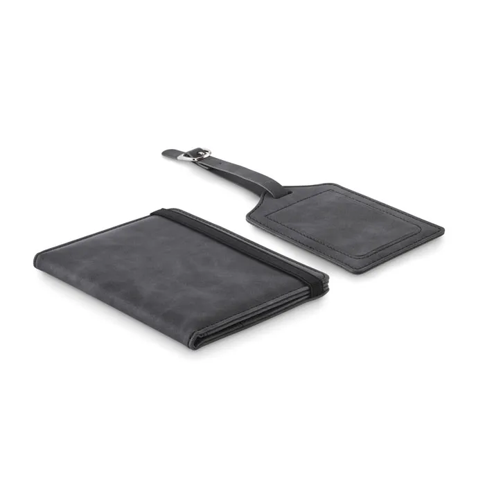 Conjunto de porta-passaporte e identificador de mala em PU. Apresentado em caixa de oferta.Conjunto de viagem