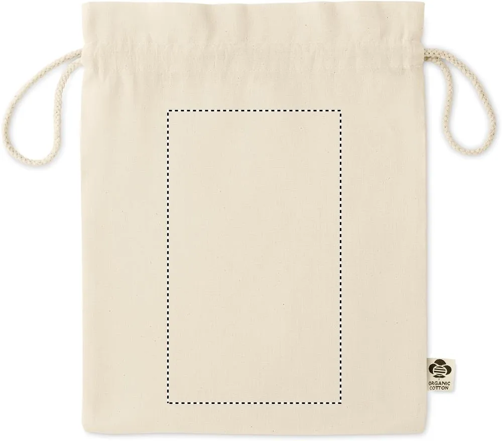 Saco médio de cordão de tracção em algodão orgânico. Tamanho aprox. 25 x 32 cm. 105 gr/m².Saco de algodão biológico