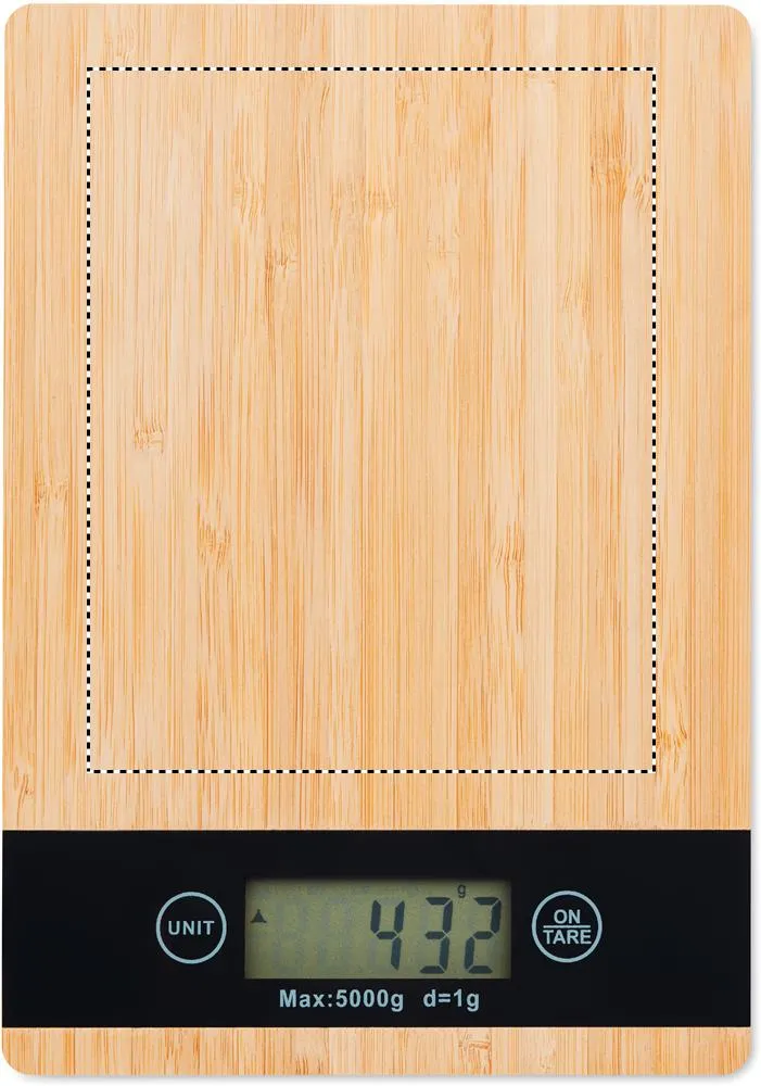 Balança de cozinha digital em bambu e ABS. Capacidade máxima de 5 kg. Alimentado por 2 pilhas AAA não incluídas. FSC®-certified | FSC 100%, N5.7, FSC-C213206Balança digital