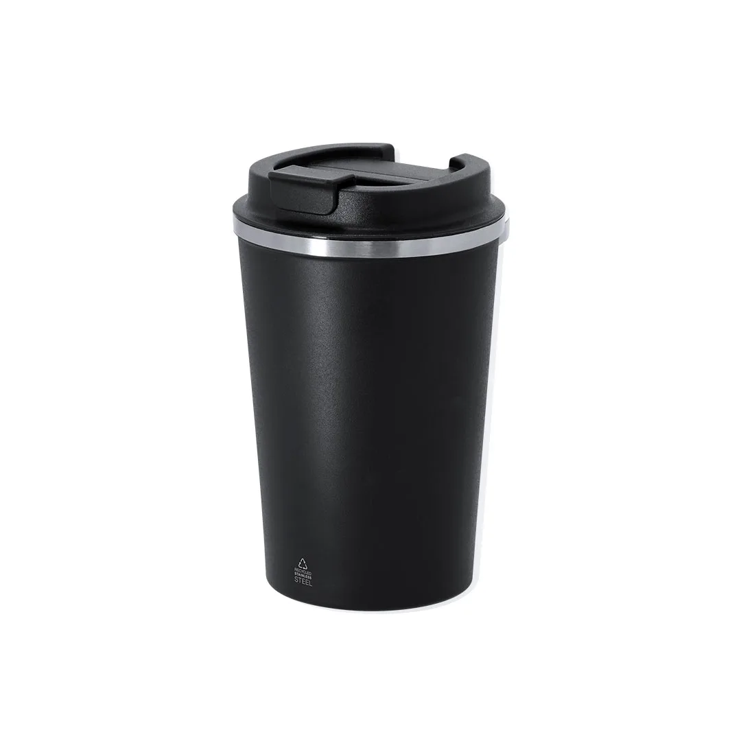 Copos térmicos fabricados em Aço Inox Reciclado de dupla parede e 350ml de capacidade. Com dupla parede para melhor e mais duradoura conservação da temperatura e interior com revestimento de cerâmica, apto para bebidas carbonatadas. Equipado com um dosador na tampa de cor preta, projetado para evitar vazamentos e livre de BPA. Com distintivo de Aço Inox Reciclado.O aço é um dos materiais mais procurados e que pode ser encontrado quase em todos os lugares, desde produtos de uso diário até grandes construções. Com inúmeras propriedades, entre as quais se destacam a durabilidade e seu alto grau de reutilização, tornando-o uma alternativa muito valorizada em soluções de sustentabilidade. Devidamente tratado, permite obter novos recursos de infinita utilização.Aço Inox Reciclado/ Interior Cerâmico350 ml