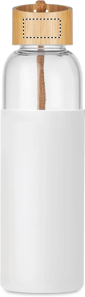 Garrafa de vidro com manga de silicone e tampa de bambu com laço de algodão. Não adequado para bebidas carbonatadas. Sem fugas. Capacidade: 500 ml. O bambu é um material natural, a cor do item, o tamanho e a impressão podem variar.Garrafa vidro 500 ml em manga
