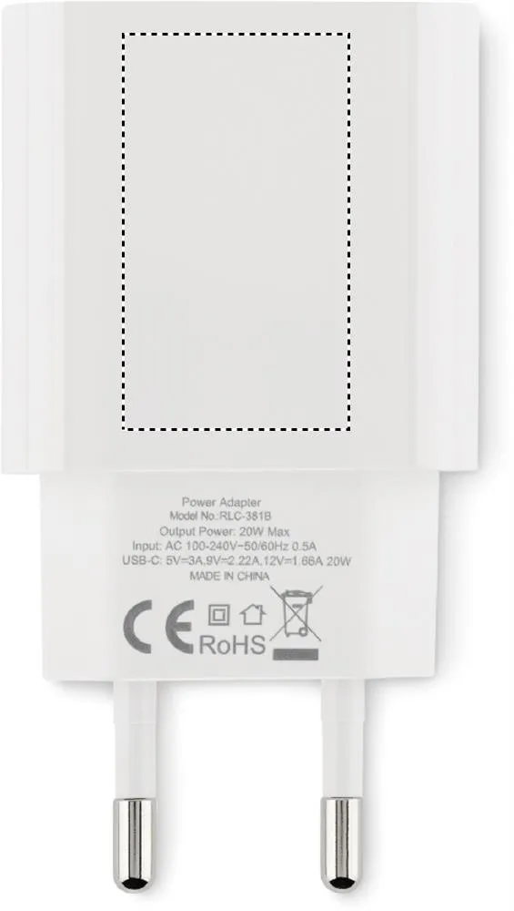 Carregador/adaptador de parede UE de 2 pólos. Suporta a tecnologia de carregamento rápido (20W). 1 Tipo C. Compatível com a tecnologia Quick Charge 3.0/Power Delivery. Não pode ser utilizado no Reino Unido.Carregador USB 2 portas 20W