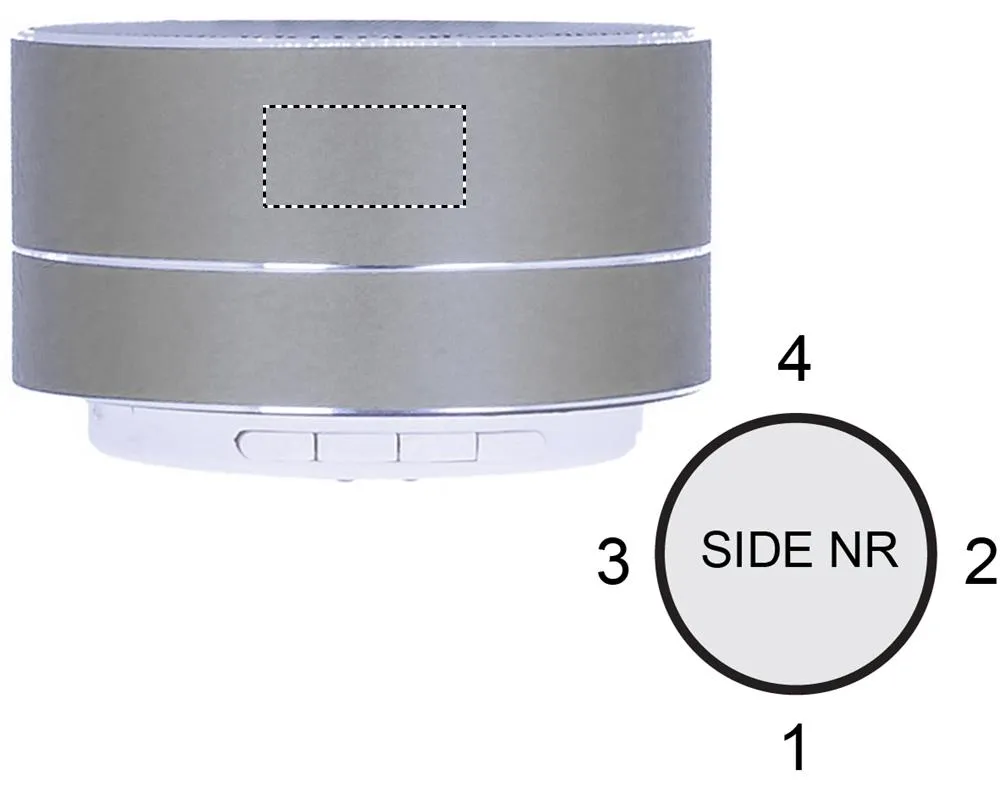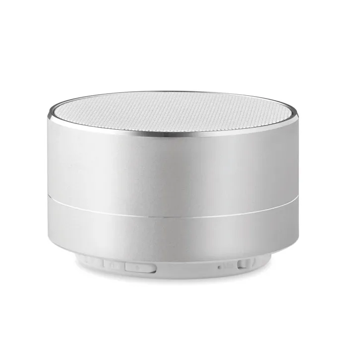 Coluna sem fio de alumínio 4.2 com bateria Li-on 450mAh recarregável e luz na parte inferior do altifalante. Dados de saída: 3W, 4 Ohm e 5V. Cabo micro USB incluído. Tempo de reprodução 3h aprox.Coluna sem fio em aluminio