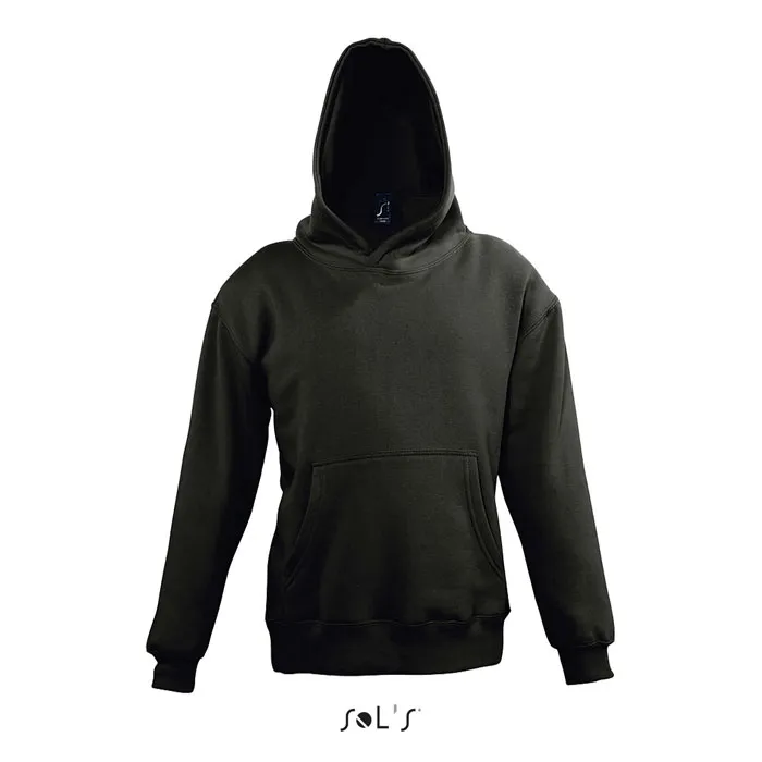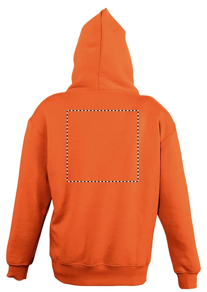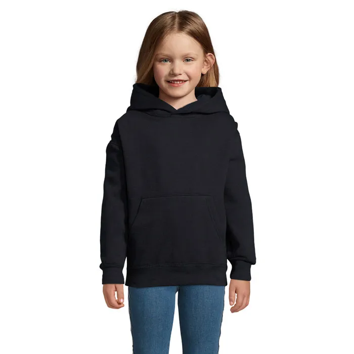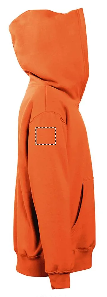 SOL'S SLAM KIDS, CRIANÇA, Sweatshirt com capuz para , 50% algodão - 50% poliéster, velo escovado 280, elastano, mangas ajustadas, cortadas e cosidas, bolsos canguru, capuz forrado sem cordão. Para saber se os tamanhos correspondem, consulte a tabela de tamanhos na secção de documentação do produto.SLAM KIDS Camisol com capuz
