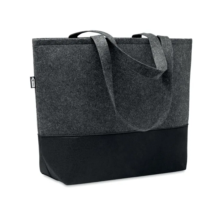 Saco de feltro RPET com pegas longas e base colorida.Saco de feltro RPET