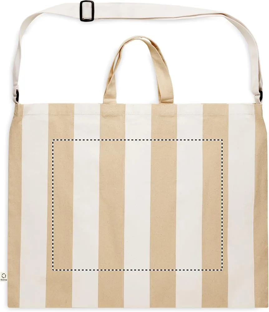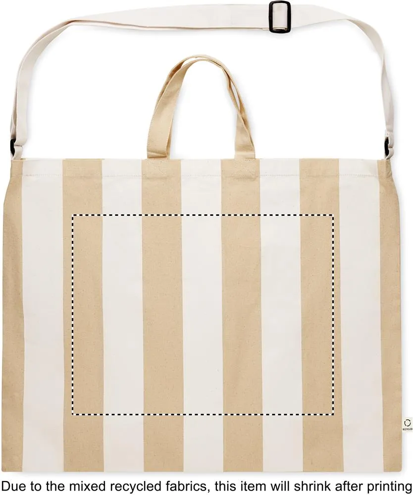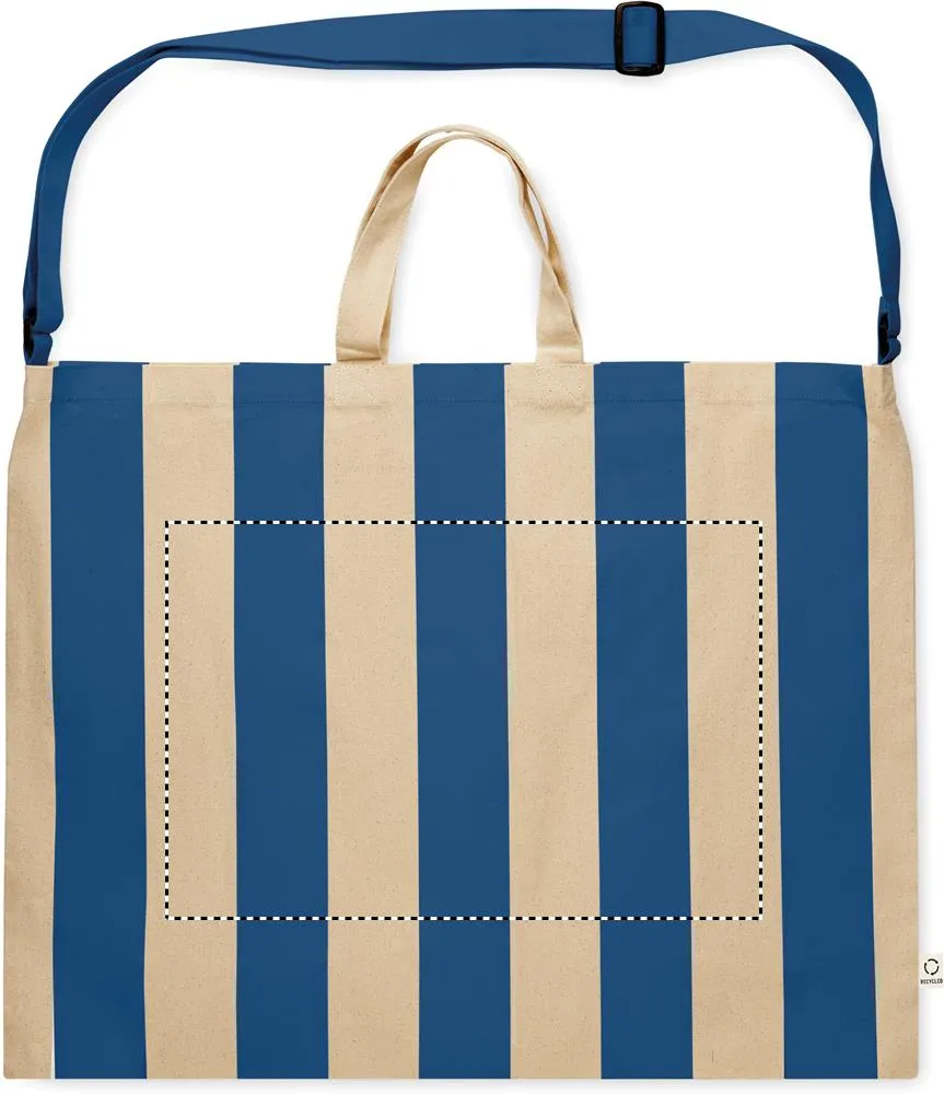 Saco de praia às riscas extra grande em algodão reciclado de 280 gr/m² (80%) e poliéster reciclado (20%) com bolso interior. Pegas curtas e uma grande alça de ombro ajustável.Saco de praia extra grande