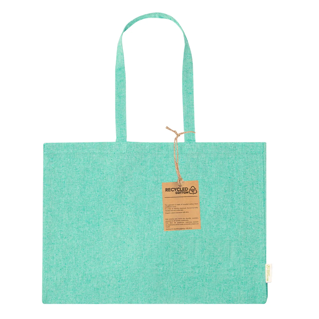 Saco fabricado em algodão reciclado de elevada gramagem 220g/m2. De acabamento cosido e com asas compridas reforçadas. Com fole e disponível em variadas cores. Logotipo algodão reciclado na etiqueta exterior. Resistência até 9 kg de peso.100% Algodão Reciclado 220 g/ m2