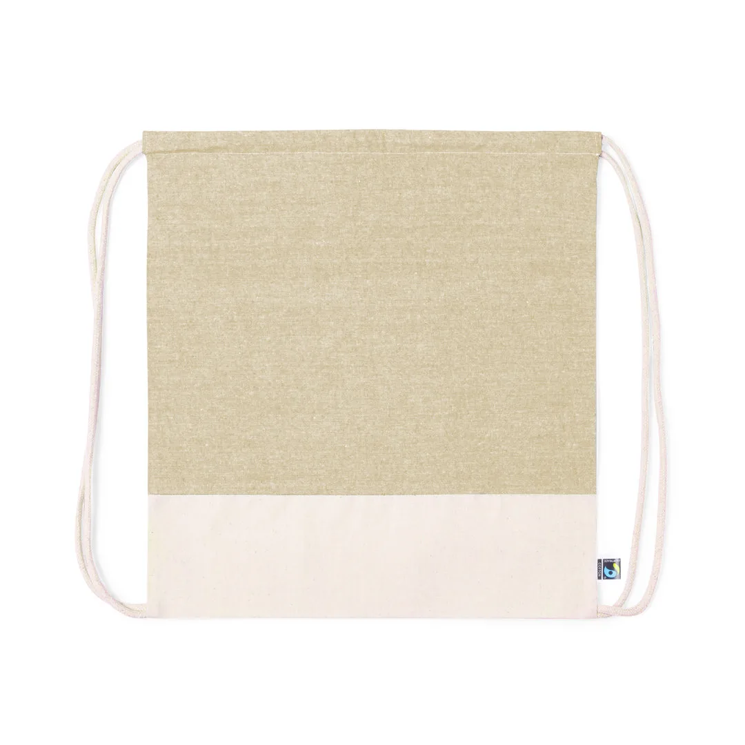 Saco mochila da linha nature, fabricado em algodão de 140g/m2. Com certificação Fairtrade (Comércio Justo), um sistema comercial solidário e alternativo ao convencional que persegue o desenvolvimento dos povos e a luta contra a pobreza. De acabamento cosido e cordões em algodão a condizer com base em tom natural e parte frontal superior dispon ível nos tons preto e natural. Etiqueta Fairtrade incluída e hangtag distintivo em cartão reciclado.100% Algodão 140 g/ m2