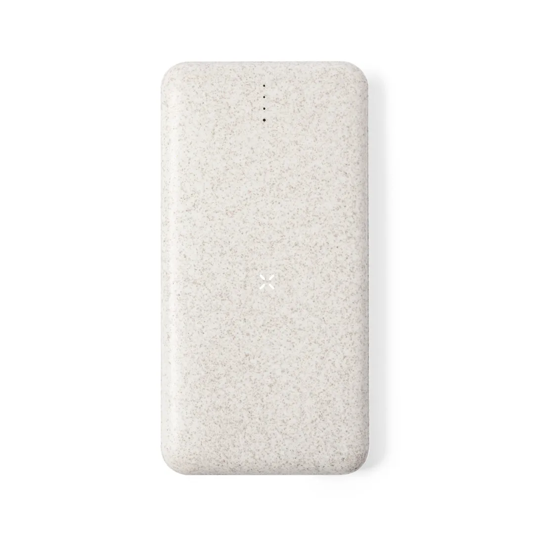 Ref: BEC5591MOBateria auxiliar externa de 8.000 mAh, com carregador sem fios integrado 10W. Fabricada em palha de trigo, para assim fomentar a utilização de matérias-primas naturais e reduzir as emissões contaminantes.2 saídas USB, com conexão Tipo C dual de entrada e saída e indicador LED do estado de carga. Compatível com dispositivos equipados com tecnologia de carregamento sem fios Qi, cabo de carga Tipo C incluído. Apresentada numa caixa individual de design kraft, com manual de instruções em espanhol e inglês. Entrada/Saída USB C: 5-12V DC 3-1.5V, PD18WSaídas USB: 5-12V DC 3-1.5AAs capacidades mostradas em todas as nossas baterias auxiliares externas são reais, incorporando todas elas baterias de grau A e não recicladas, com uma vida útil de pelo menos 500 ciclos de carga e segundo normativa CE. Além disso, são fabricadas conforme as normas RoHS e em cumprimento com os seguintes requisitos de segurança:Sistema de proteção contra sobrecarga do power bank. Sistema de proteção contra descarga completa que proporciona uma maior durabilidade do power bank. Sistema de bloqueio para evitar curto-circuitos. Sistema de transferência de carga constante, de acordo com a capacidade do dispositivo de destino.