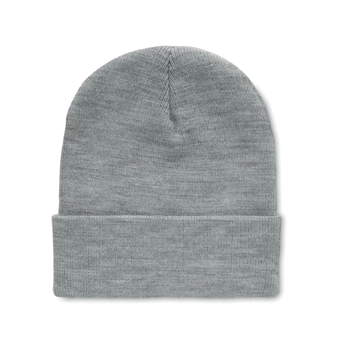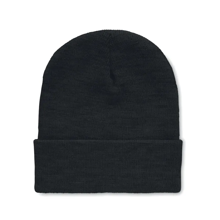Gorro unisex de malha em poliéster RPET elástico macio com manguito enroladoGorro em RPET com punho