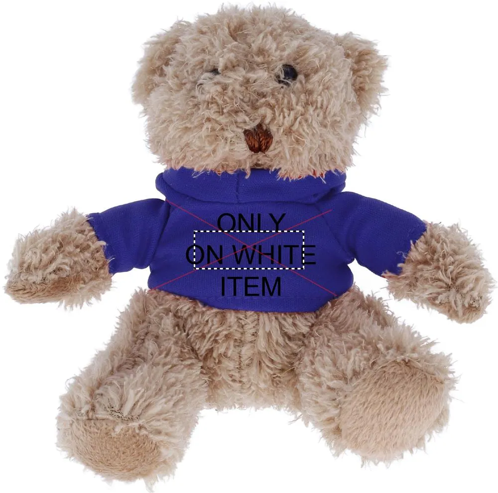 Ursinho de pelúcia com t-Shirt e capuz. Impressão em sublimação apenas dispoível para artigos de cor branca.Urso de peluche com t-shirt