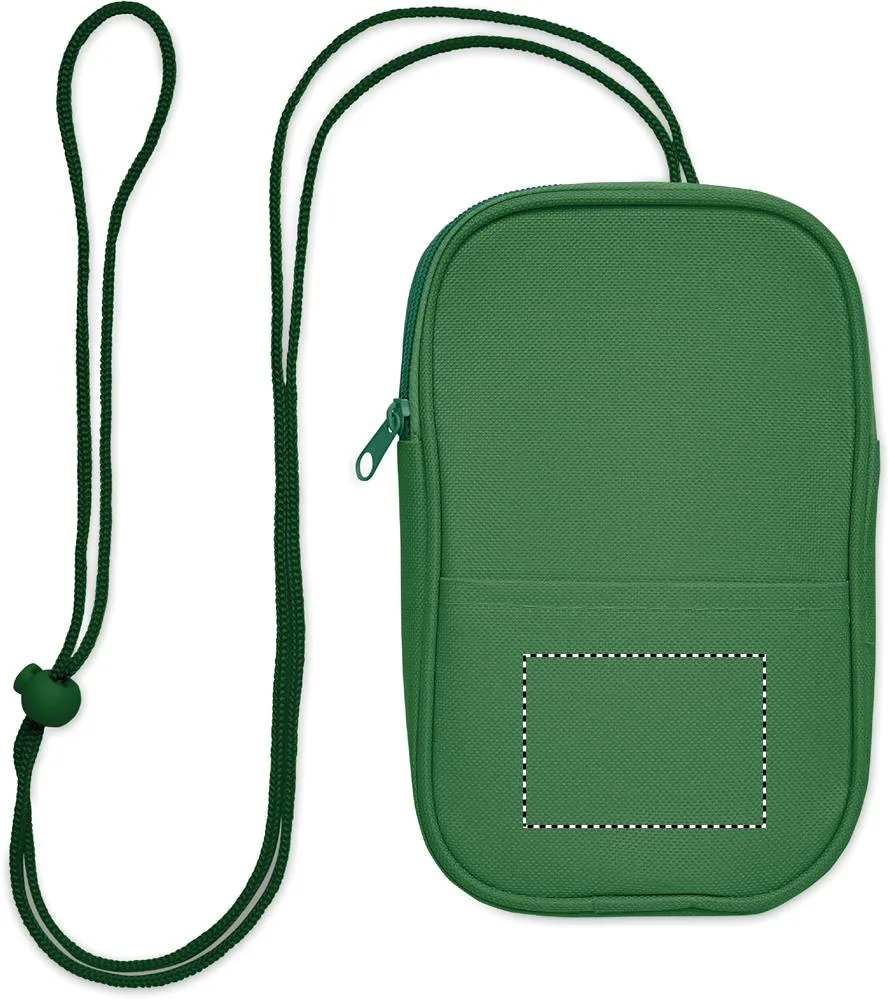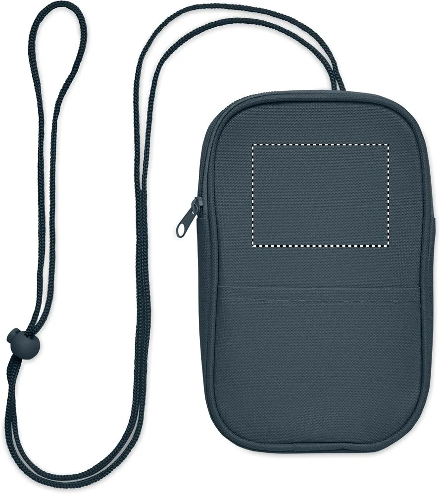 Mala de viagem tipo cruzada em poliéster RPET 600D e forro RPET 210D com alça de cordão..Pochete de viagem RPET