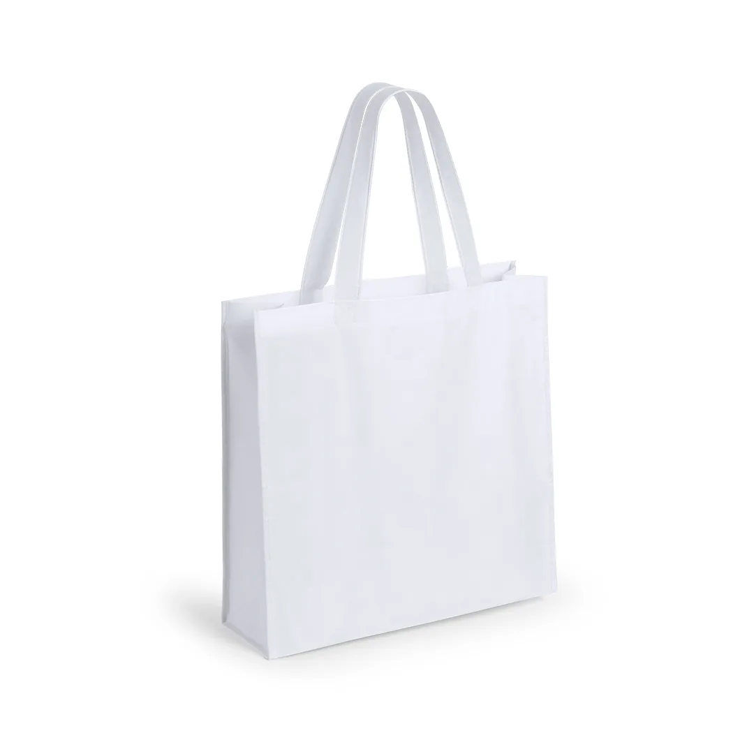 Saco em não-tecido laminado com um acabamento mate de 110g/m2, numa variada gama de cores brilhantes. Com pegas médias reforçadas de 55cm, gusset e acabamento costurado. Resistência até 5kg de peso.Non-Woven Laminado