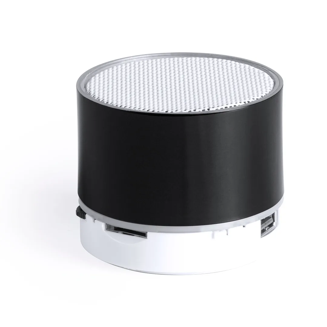 Palestrante compacto de encaixe Bluetooth® com iluminado por dentro. Superfície externa especialmente projetada para impressão a laser para iluminar o logotipo marcado. Design Bicolor com acabamento suave e conexão Bluetooth® 3. 0, oferece energia de 3W, função sem mãos, um slot para cartão micro SD de até 32 GB, função de rádio FM, entrada de linha auxiliar via conexão com tomada de 3,5 mm e montagens de borracha não deslizante na base. Compatível com iOS e Android, inclui mini cabo de carregamento USB, cabo auxiliar de 3,5 mm e vem em uma atraente caixa de design.Luzes Led. Conexão Bluetooth. Potência Sonora 3W. Bateria 300 mAh