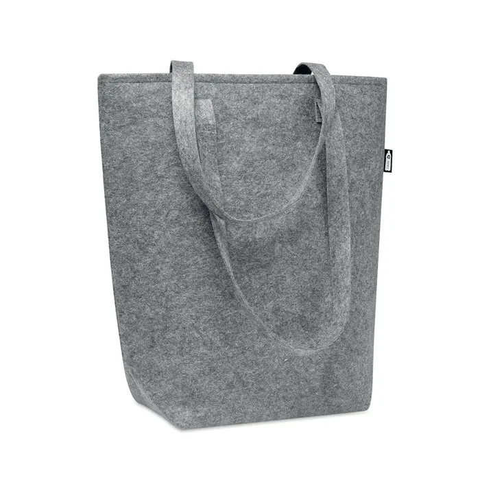 Saco de compras em feltro RPET com alças compridas e reforço no fundo. Espessura do feltro: 2 mm.Saco de compras em feltro RPET