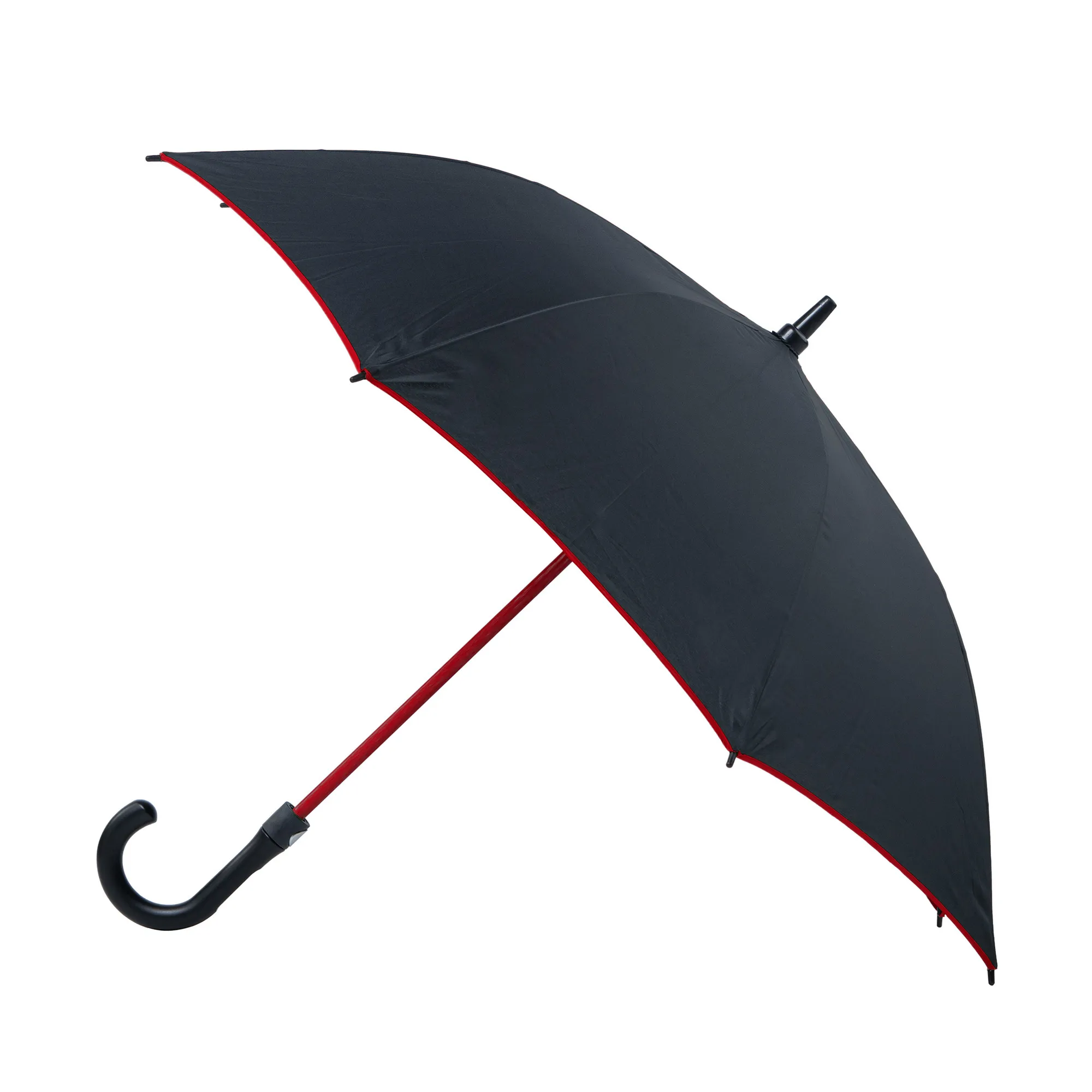 A chuva pode ser imprevisível, mas o seu estilo não precisa ser. Apresentamos o nosso guarda-chuva de 8 painéis com pega em forma de J, uma combinação perfeita de funcionalidade e moda, concebido para os que não abdicam de um acessório chique mesmo nos dias mais chuvosos. As varetas, bem como o mastro, deste guarda-chuva são fabricadas em fibra de vidro de alta qualidade e a sua cor combina com o rebordo , tornando-o incrivelmente resistente e à prova de vento. Não terá de se preocupar em ficar encharcado por uma súbita rajada de vento ou numa chuva forte.Guarda-chuva automático, em pongee, varetas coloridas
