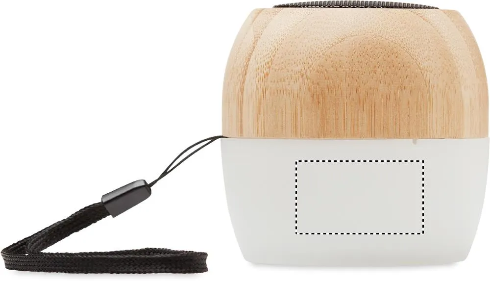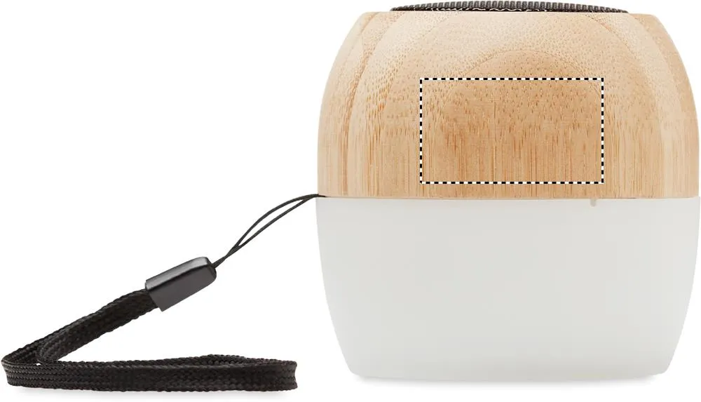 coluna 5.0 sem fios em Bambu e PP com luz de ambiente de 4 cores e correia de transporte. 1 Bateria recarregável de Li-POL 300 mAh. Dados de saída: 3W, 4 Ohm. Tempo de reprodução: aprox. 2h. O bambu é um material natural, a cor do item, o tamanho e a impressão podem variar.Coluna de bambu sem fios 5.0