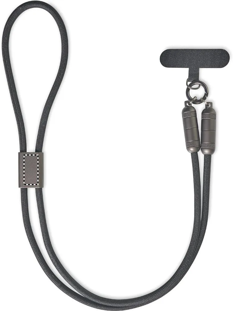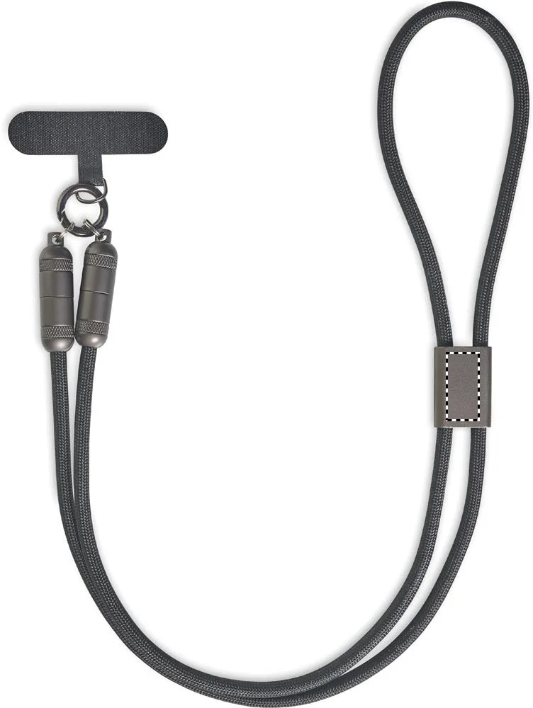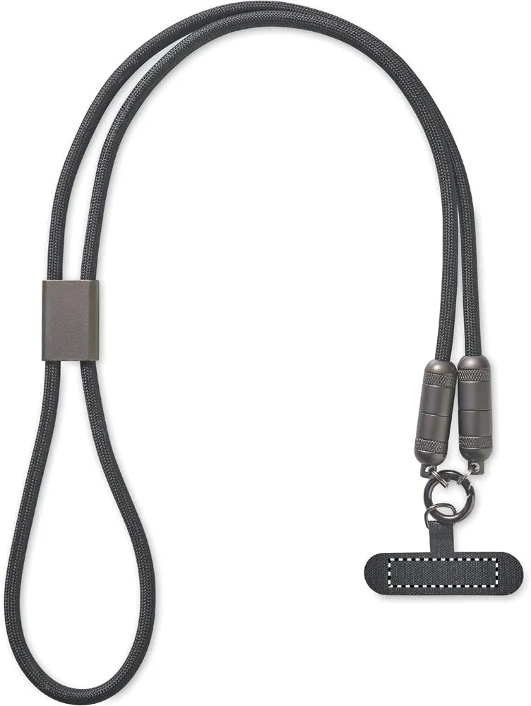 Lanyard para telemóvel com cabo de carga e transferência de dados de 60 W tipo C a tipo C em RPETCarregador móvel de cordão