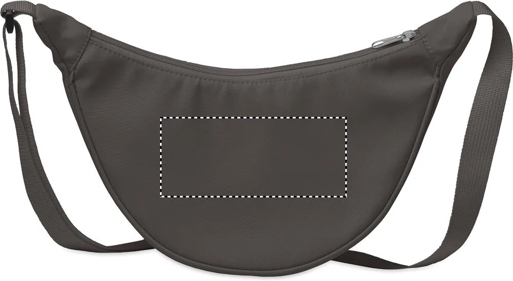 Mala tipo bandolera em forma de meia-lua ou cruzada Oxford 400D e forro RPET 210D. Um bolso principal com fecho e 2 bolsos interiores.Sling bag em 400D oxford