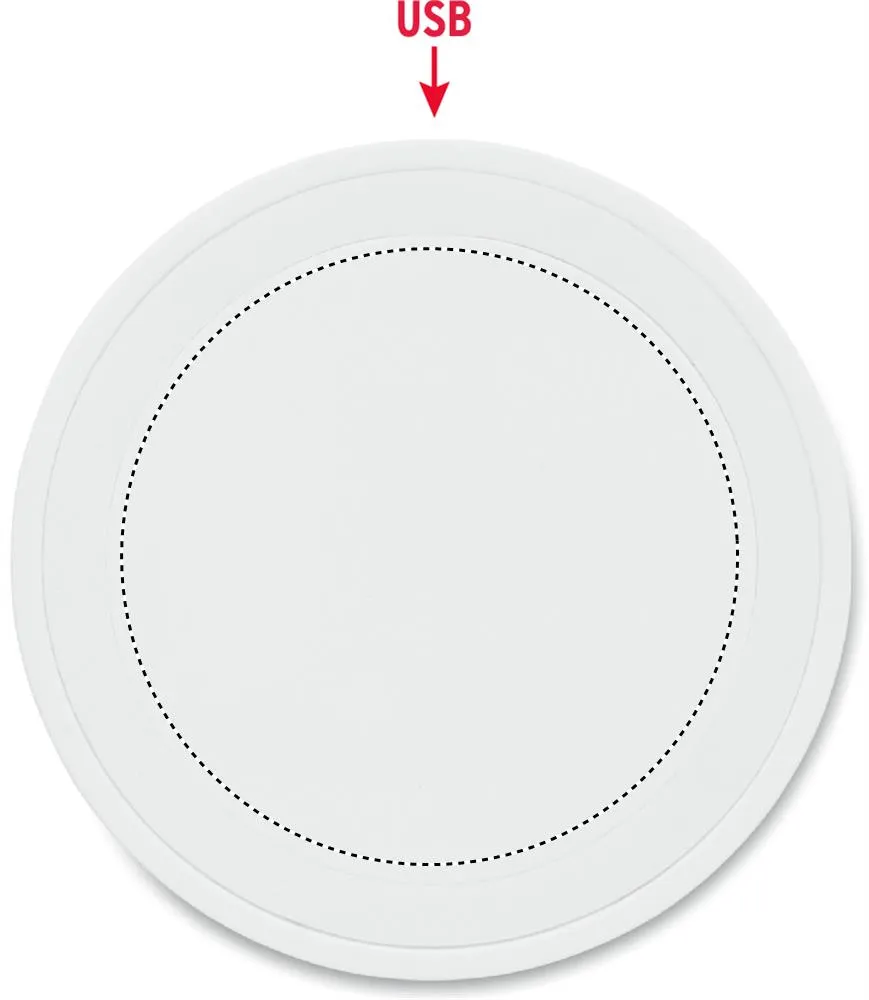 Conjunto com carregador sem fios em ABS. Apresentado numa bolsa em EVA/ PU. Contém ficha UE e cabo de carregamento USB A para Micro B. Dados de saída: DC9V/1.66A (5W).Set carregador sem fio