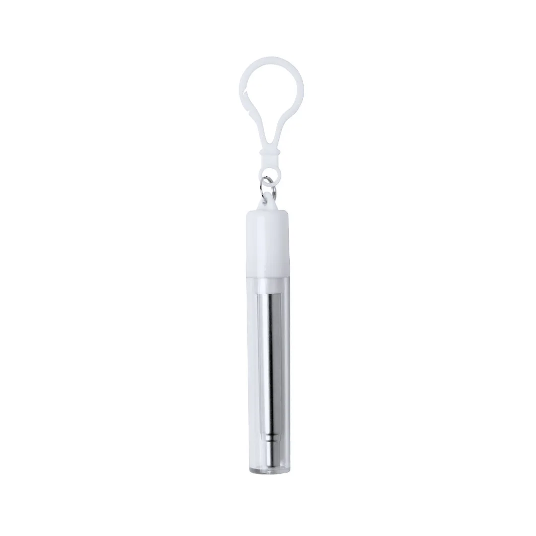 Palha reutilizável e extensível em material de aço inoxidável com ponta de silicone. Incluindo o acessório de limpeza e apresentado em um caso transparente com acessório de transporte.Aço Inox/ SiliconeExtensível. Reutilizável. Limpador Incluído