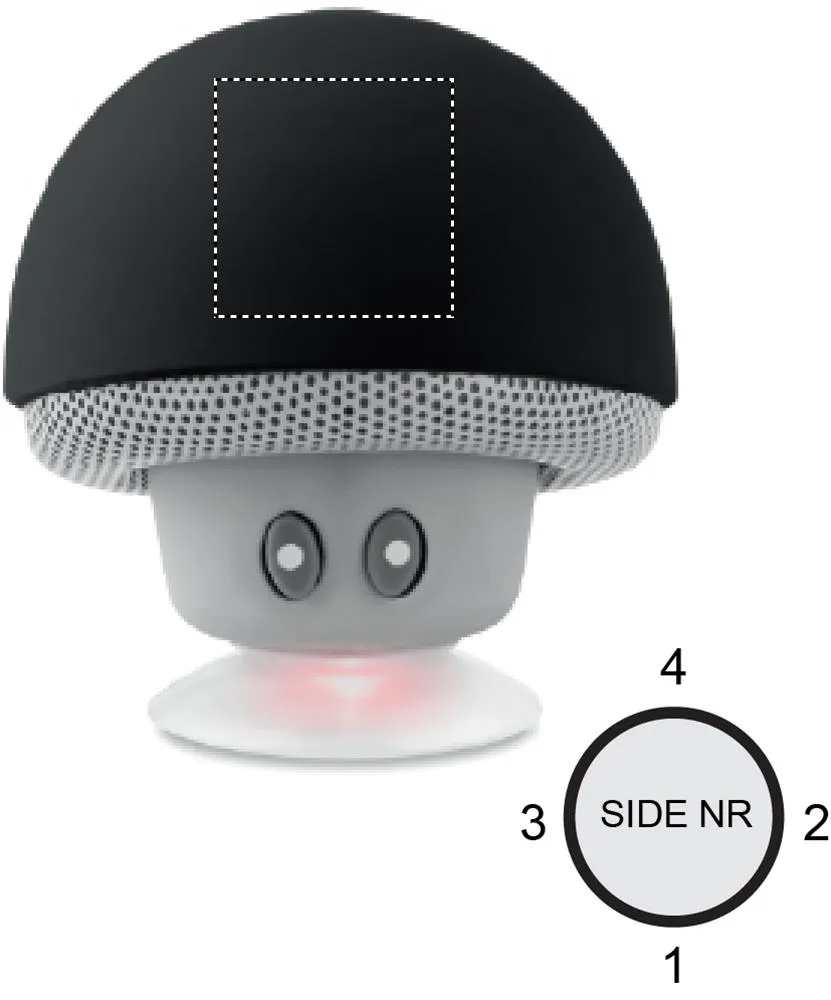 Coluna/suporte telemóvel sem fio 2.1 forma cogumelo ABS com ventosas. Bateria Recarregável Lítio 180 mAh. Cabo carregamento USB e conector 3,5 mm. Output: 4 Ohm, 5V e 3W. Tempo de reprodução 2h aprox.Coluna sem fio 3W ventosas