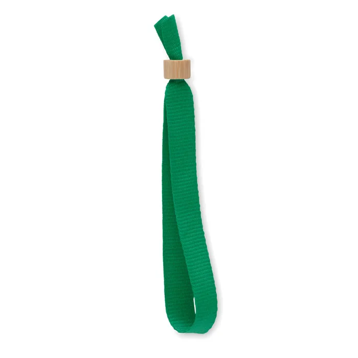 Pulseira de evento de poliéster RPET 300D com fecho de argola de bambu. Tamanho: 34 cm Largura: 1,5 cm. O bambu é um material natural, a cor do item, o tamanho e a impressão podem variar.Pulseira de poliéster RPET