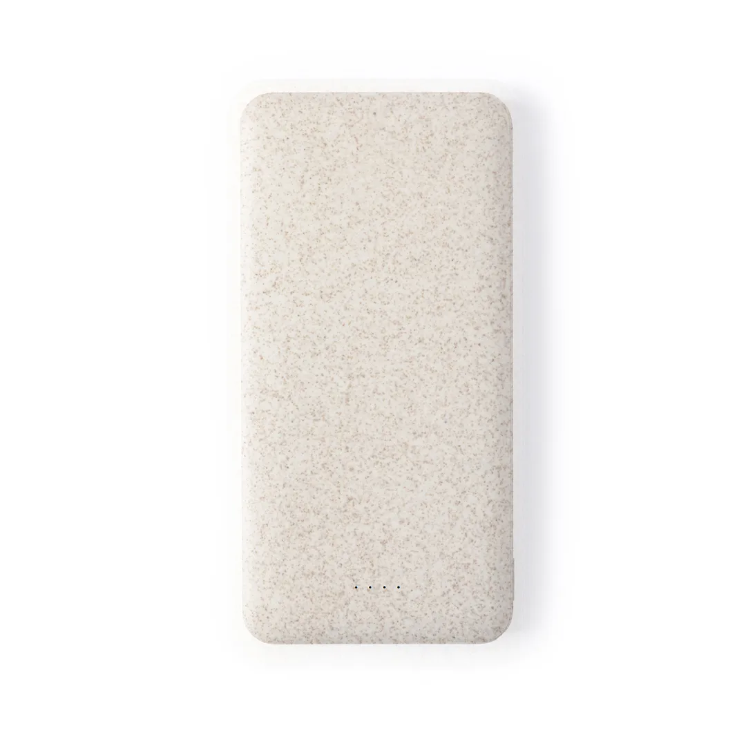 Ref: BEC61012MOBateria auxiliar externa de 20.000 mAh fabricada em palha de trigo. 2 saídas USB, com conexão Tipo C com dupla de entrada/saída e indicador LED do estado de carga. Apresentada em caixa individual de design kraft, com manual de instruções em espanhol e inglês.Entrada/Saída USB C: 5-12V DC 3-1,5V, PD18WSaídas USB: 5-12V DC 4,5-1,5A, 22,5WA palha de trigo favorece a utilização de matérias-primas naturais, reduzindo assim as emissões poluentes.As capacidades indicadas em todas as nossaspower banks externas são reais, incorporando todas elas baterias de grau A e não recicladas, com uma vida útil de pelo menos 500 ciclos de carga e de acordo com as normas CE.Além disso, são fabricadas de acordo com as normas RoHS e em conformidade com os seguintes requisitos de segurança:Sistema de proteção contra sobrecarga do powerbank.Sistema de proteção contra descarga completa para aumentar a durabilidade do powerbank.Sistema de bloqueio para evitar curto-circuitos.Sistema de transferência de carga constante, de acordo com a capacidade do dispositivo de destino.