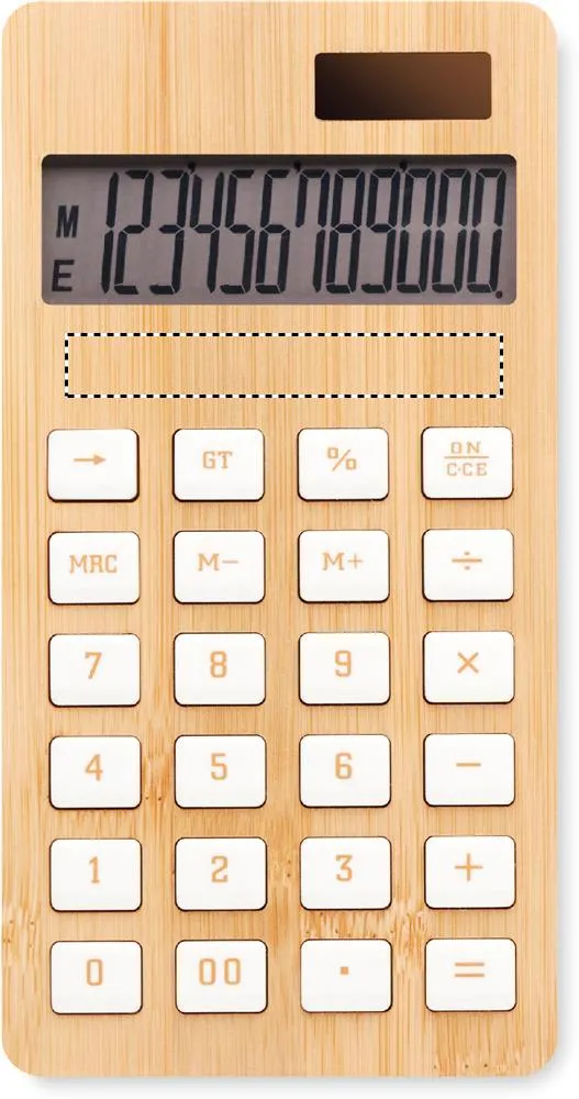 Calculadora de 12 dígitos de dupla potência em ABS com caixa de bambu. 1 pilha recarregável incluída. O bambu é um material natural, a cor do item, o tamanho e a impressão podem variar.Calculadora 12 dígitos bambu