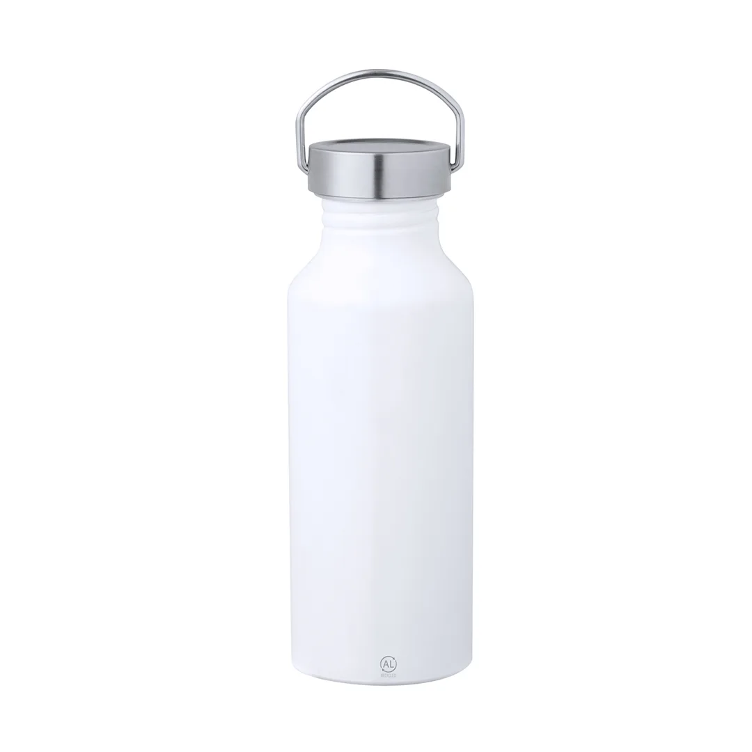 Garrafa de 650 ml de capacidade, fabricada em Alumínio Reciclado de acabamento brilho. Com tampa original prateada de rosca a condizer e pega integrada. Disponível numa variada gama de elegantes cores. Com logotipo Alumínio Reciclado, livre de BPA e apresentada em caixa individual de design kraft.O Alumínio Reciclado é um material com possibilidades de reciclagem quase infinitas, sem perder as suas propriedades originais e consumindo menos energia no processo.Certificação GRS (Global RecycLED Standard / Norma de Reciclagem Global), que garante a origem reciclada do material usado para fabricar o produto.Alumínio Reciclado650 ml