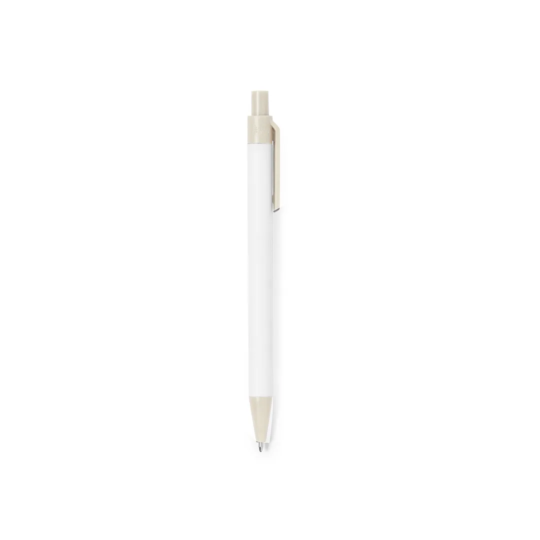 Esferográfica de mecanismo pulsador com corpo em cartão reciclado. Clip, ponta e pulsador em palha de trigo. Em tinta azul e com distintivo Wheat Straw na parte superior da esferográfica.O cartão reciclado provém do reaproveitamento do excedente de fabricações e reciclagem de papel no final da sua vida útil, convertendo-se numa tela ecológica e sustentável. A palha de trigo fomenta a utilização de matérias-primas naturais, reduzindo assim as emissões poluentes.Cartão Reciclado/ Palha de Trigo/ ABS