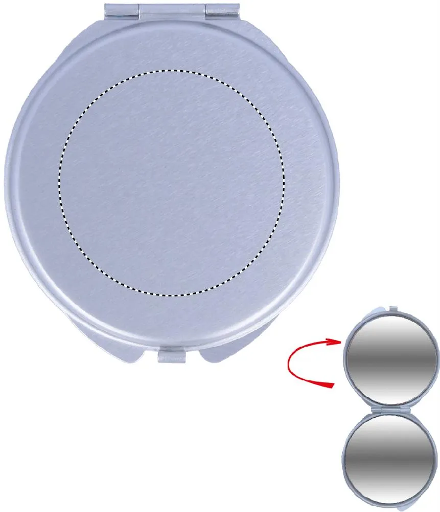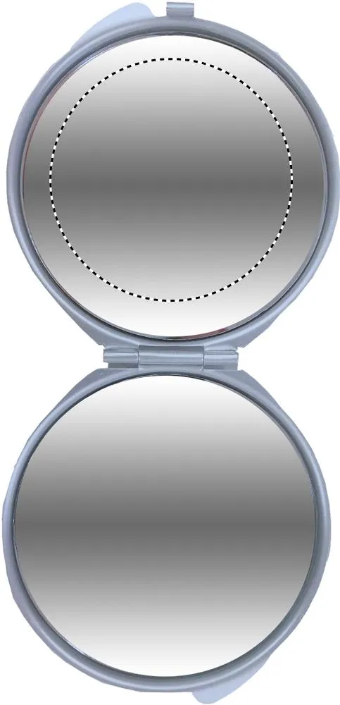 Espelho de alumínio, normal e com aumento, em estojo.Espelho de alumínio