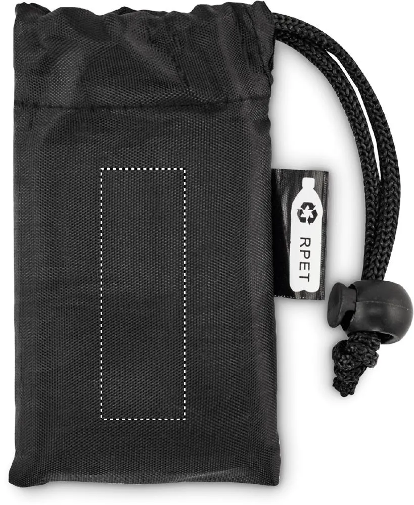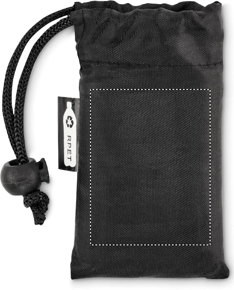 Manta de emergência em saco de cordão em poliéster RPET. Cobertor de tamanho: 130 x 210 cm.Manta de emergência em saco