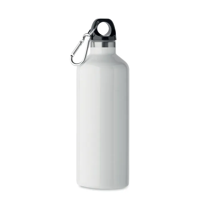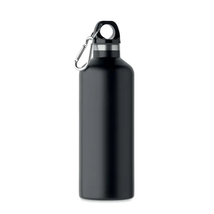Garrafa isolante a vácuo de parede dupla em aço inoxidável reciclado (90% aço inoxidável reciclado e 10% aço inoxidável) com tampa com pega de mosquetão. O mosquetão não é para escalada (uso não profissional). Sem fugas. Capacidade: 500 ml.Garrafa de parede dupla 500 ml