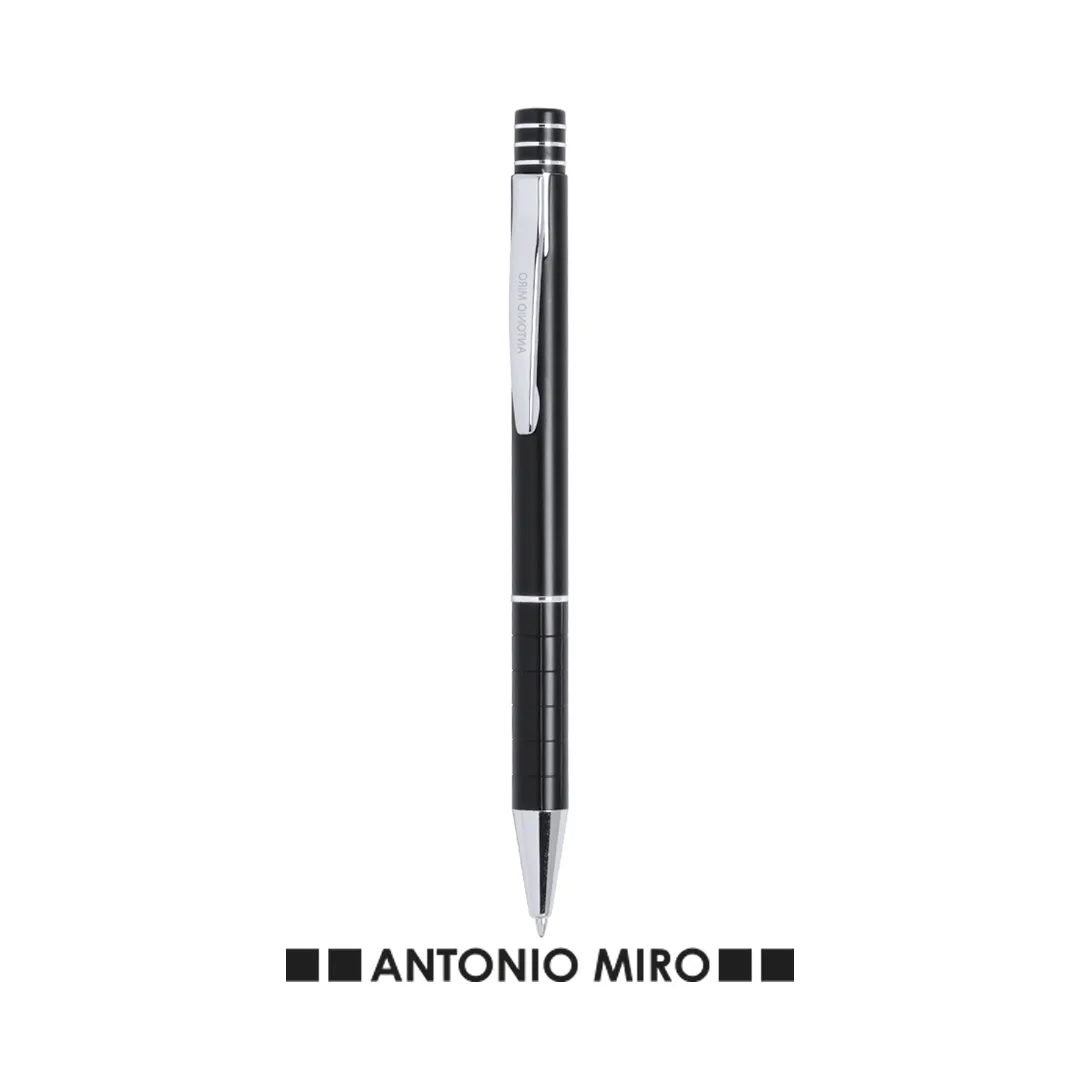 Caneta de bola de Antonio Mirã em um design elegante e corpo de alumínio macio com acessórios de cor prata. Mecanismo de torção, com top top, clipe de metal original e apresentado em uma caixa de alumínio preto individual com o logotipo da marca. Tinta azulAlumínio