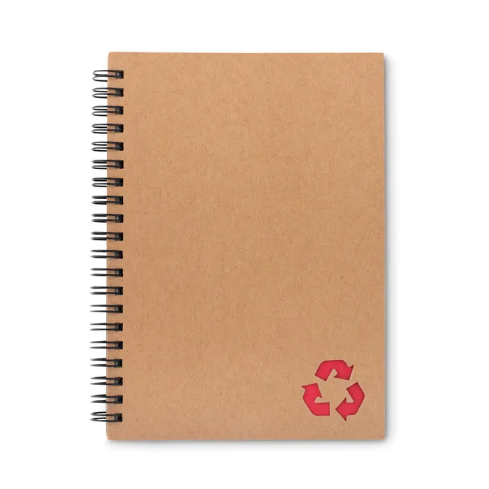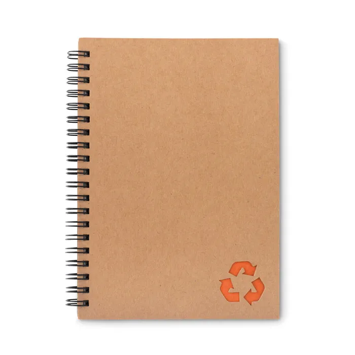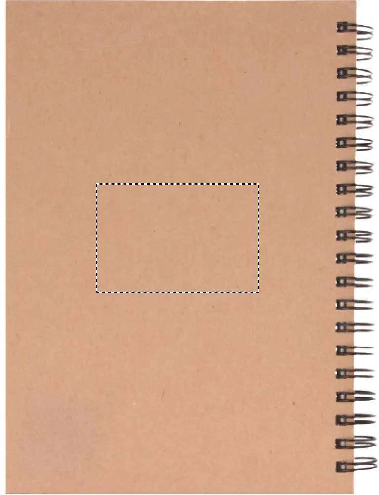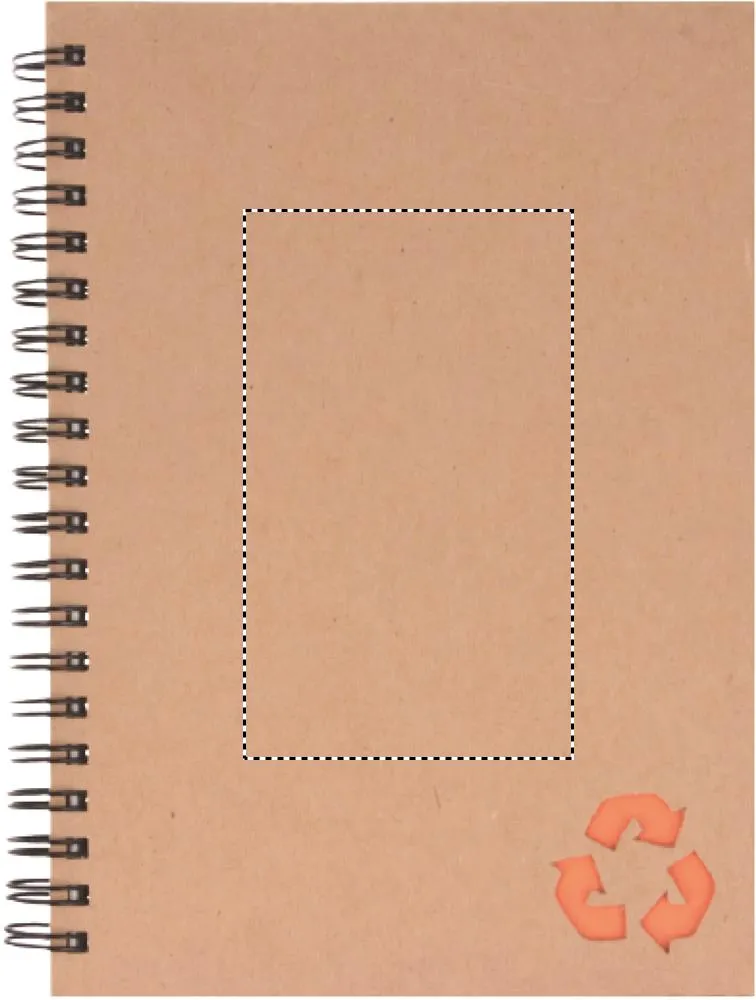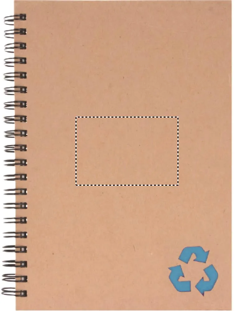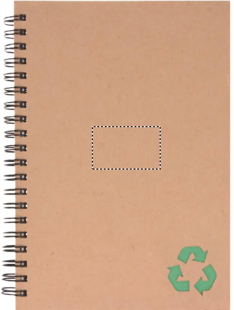 Caderno de capa de cartão reciclado. Fio duplo. 140 páginas de papel mineral pautado (70 folhas). O papel mineral é fabricado a partir de carbonato de cálcio e PEAD (resina de polietileno) utilizado como aglutinante. É impermeável e resistente à gordura.Caderno de papel mineral
