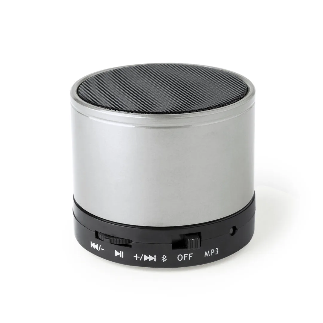 Compacto altifalante com conexão Bluetooth® 5.0 e 3W de potência. Função mãos livres, ranhura para cartões mini SD de até 64 GB de capacidade, função rádio FM e entrada auxiliar de linha mediante conexão jack de 3,5mm. Com suportes de borracha antiderrapantes na base. Compatível com iOS e Android, inclui cabo de carregamento e cabo auxiliar jack de 3,5mm. Apresentado em atrativa caixa de design, com manual de instruções em espanhol e inglês. Disponível em extensa gama de cores metalizadas.MetalConexão Bluetooth. Potência Sonora 3W. Bateria 300 mAh