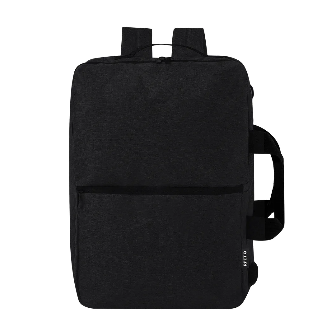 Mochila porta-documentos confecionada em resistente 600D RPET. Apresenta um design urbano que incorpora um bolso central com fecho de correr, e duplo puxador. Com interior acolchoado para portátil de até 15 polegadas, bolso adicional com fecho de correr duplo e bolso frontal. As suas alças de ombros e as costas estão acolchoadas e são ajustáveis para maior comodidade. Oferece três modalidades de transporte: como mochila, graças às alças de ombros acolchoadas; como porta-documentos, graças à sua pega de transporte acolchoada; e como bandolera graças à sua alça larga ajustável. Está disponível em três elegantes cores e é apresentada de maniera sofisticada numa bolsa individual reciclada.O material RPET é elaborado a partir de plástico reciclado, para assim fomentar a reutilização de resíduos plásticos e ajudar à sustentabilidade do planeta.Poliéster 600D RPETBolso Acolchoado para Portátil. Parte Traseira e Alças Acolchoadas