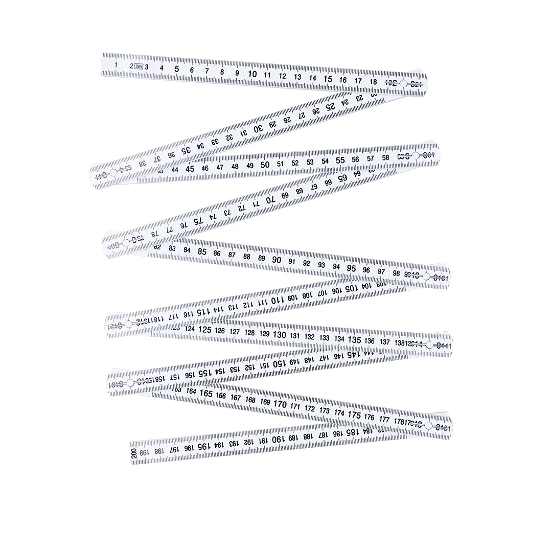Régua dobrável de 2 metros em fibra de vidro resistente. Com uma escala preta em centímetros visível em ambos os lados. Com posições ajustáveis a 90º, 180º e 270º para maior versatilidade.Fibra de Vidro2 M. Dobrável