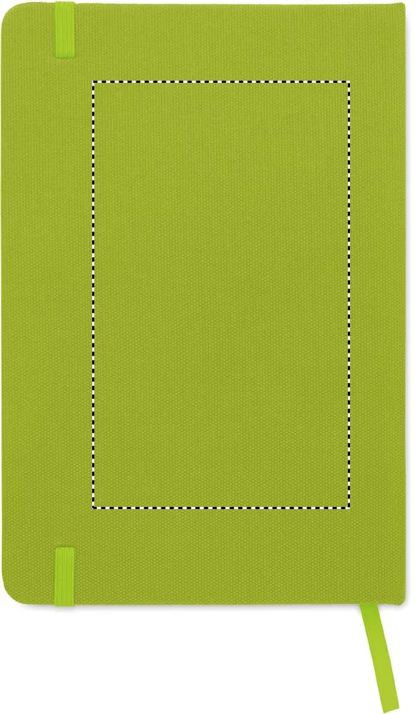 Caderno A5 com capa dura RPET 600D e 80 páginas pautadas em papel reciclado com fita elástica e fita. FSC®-certified | FSC MIX CREDIT, P7.1, FSC-C213206Capa notebook A5 600D RPET