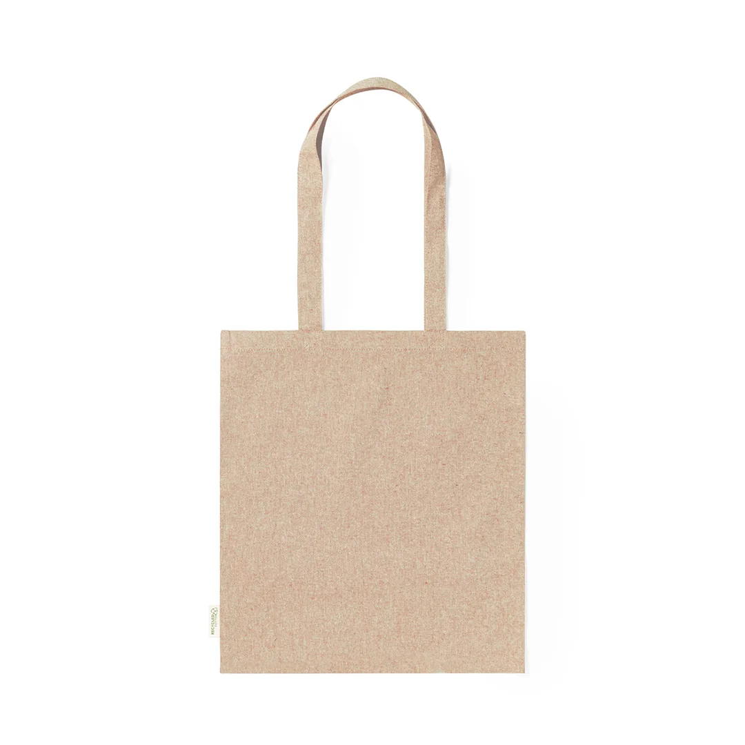 Saco fabricado em material algodão reciclado de 140g/m2. Certificação GRS (Global Recycled Standard/Standard de Reciclagem Global), que garante a origem reciclada do material usado para fabricar o produto. De acabamento cosido, com asas compridas reforçadas de 70 cm e diponível numa variada gama de cores. Resistência até 8kg, incuída etiqueta com distintivo de algodão reciclado.100% Algodão Reciclado 140 g/ m2
